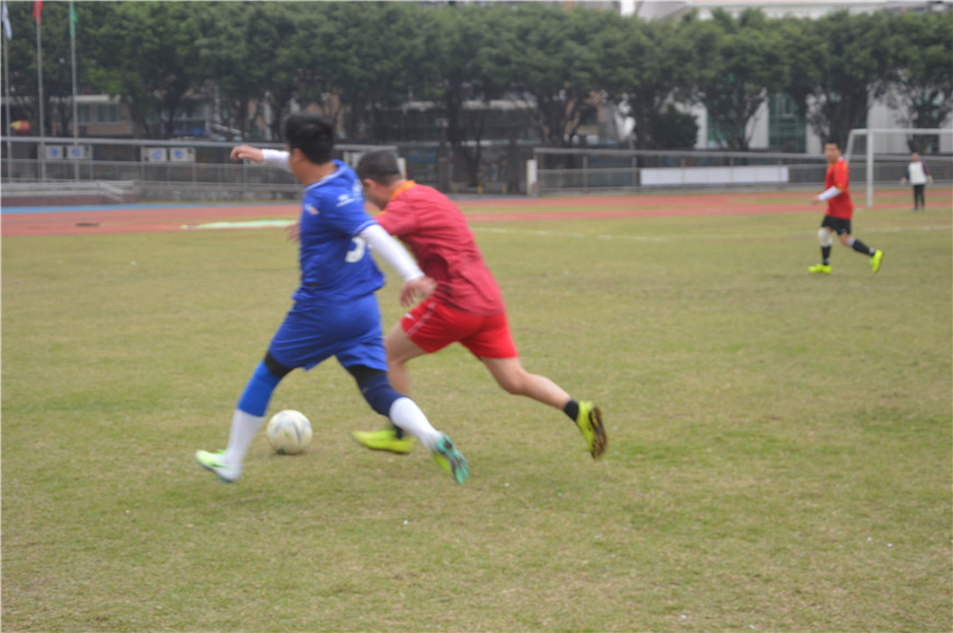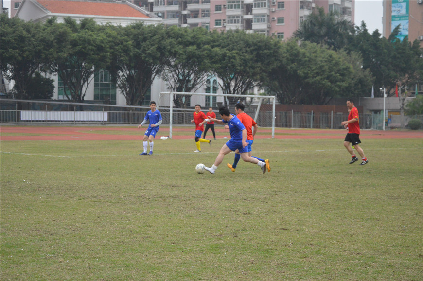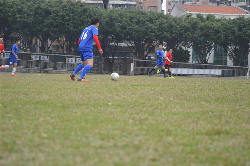 雙方互相握手認識后就進入到了比賽,隨著裁判員一聲哨響,比賽正式開始。首先由中興達集團足球隊開球。中興達是藍色隊服,凱旋皇是紅色隊服,上半場中興達從左往右攻。雙方的球員們都毫不示弱, 展現出各自細膩的腳法、默契的配合、縝密的隊形部署很快使比賽進入白熱化階段。上半場結束時,1:0凱旋皇對暫時領先。