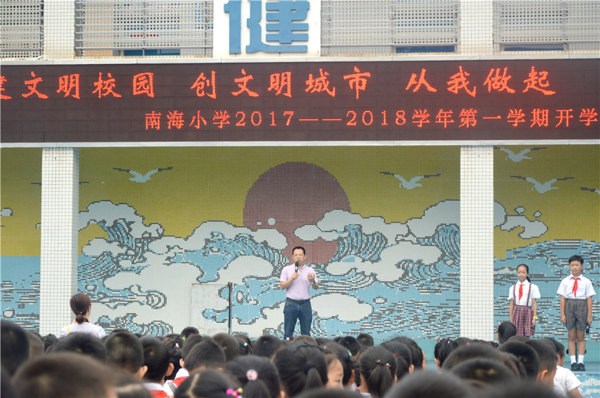 做文明學(xué)生,建文明校園,創(chuàng)文明城市。2017年9月1日,在南山區(qū)南海小學(xué)舉行了隆重的開學(xué)典禮上進(jìn)行了圖書捐贈(zèng),中興達(dá)集團(tuán)廖慶文董事長并代表捐贈(zèng)單位 作了重要講話。