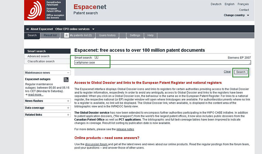 登錄歐盟EPO : https://worldwide.espacenet.com/ 在search頁面下 ,在查詢框