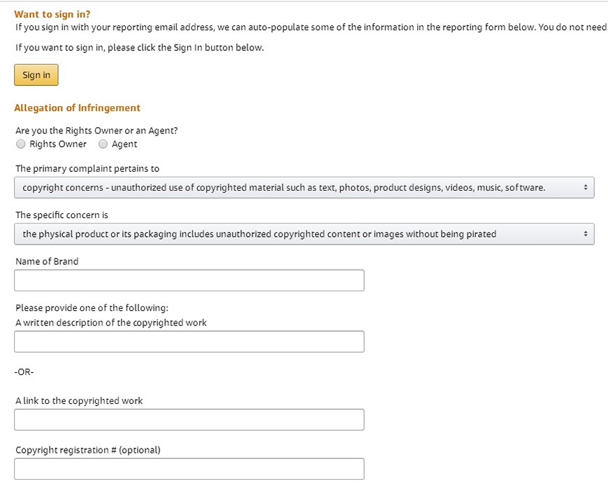 2.假如對方繼續(xù)侵權(quán)的話就向亞馬遜平臺投訴,鏈接https://www.amazon.com/gp/help/reports/infringement