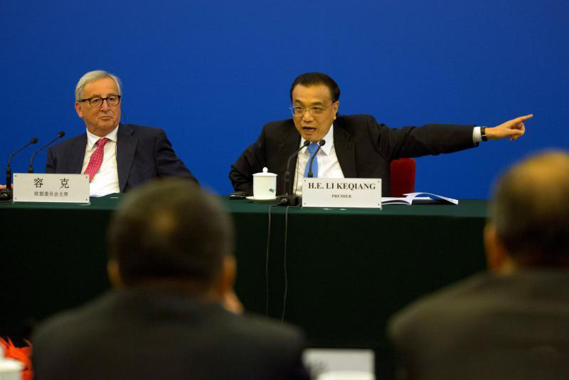 國務(wù)院總理李克強(qiáng)7月16日上午在人民大會(huì)堂同歐洲理事會(huì)主席圖斯克、歐盟委員會(huì)主席容克共同主持第二十次中國歐盟領(lǐng)導(dǎo)人會(huì)晤。