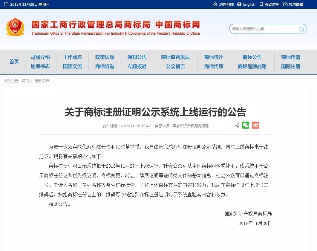 據(jù)介紹,此次上線的商標(biāo)網(wǎng)上服務(wù)系統(tǒng),集網(wǎng)上查詢、網(wǎng)上申請(qǐng)、網(wǎng)上發(fā)文、網(wǎng)上公告、網(wǎng)上繳費(fèi)、商標(biāo)注冊證明公示6大功能于一體,可為社會(huì)公眾提供全方位全流程服務(wù)。掃描商標(biāo)注冊證上的二維碼,即可鏈接到商標(biāo)注冊證明公示系統(tǒng)查驗(yàn)其內(nèi)容和效力。