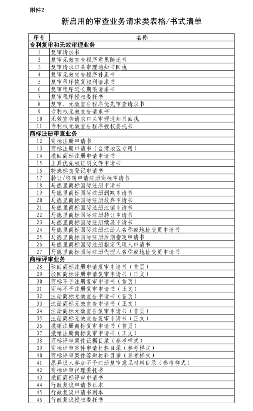 附件:2.新啟用的審查業(yè)務(wù)請(qǐng)求類表格/書式清單