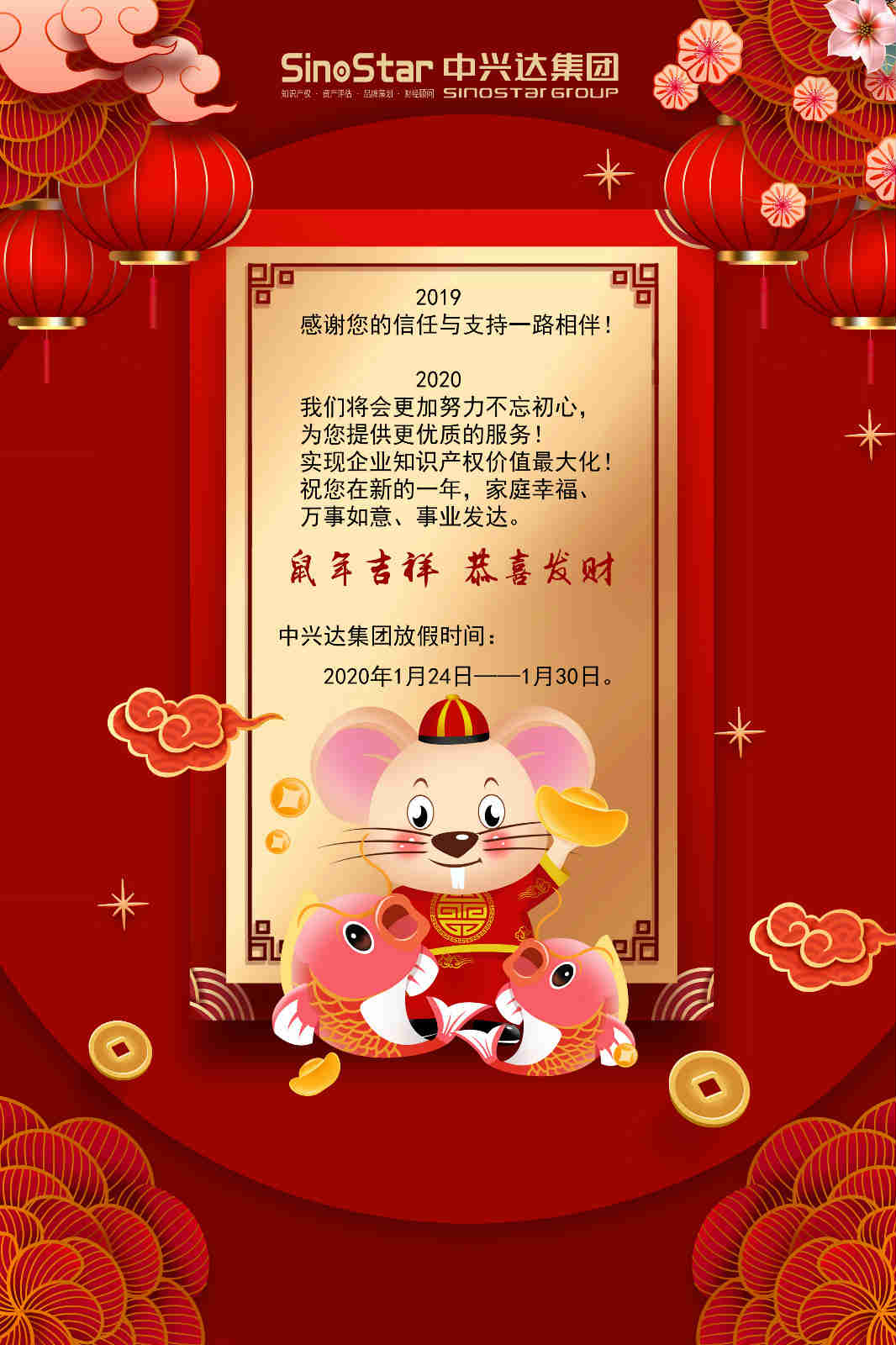 中興達(dá)集團全體員工祝您:新的一年,財富跟您簽約,喜悅與您相擁,家庭幸福、萬事如意、生意興隆。